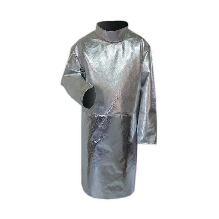 Heat-resistant protective apron. Protects against flames, molten metal splashes, and intense thermal radiation. Designed for use in conjunction with clothing or other protective clothing for tapping and pouring steel and non-ferrous metals. The apron is made entirely of metallized paraaramid/preox fabric.